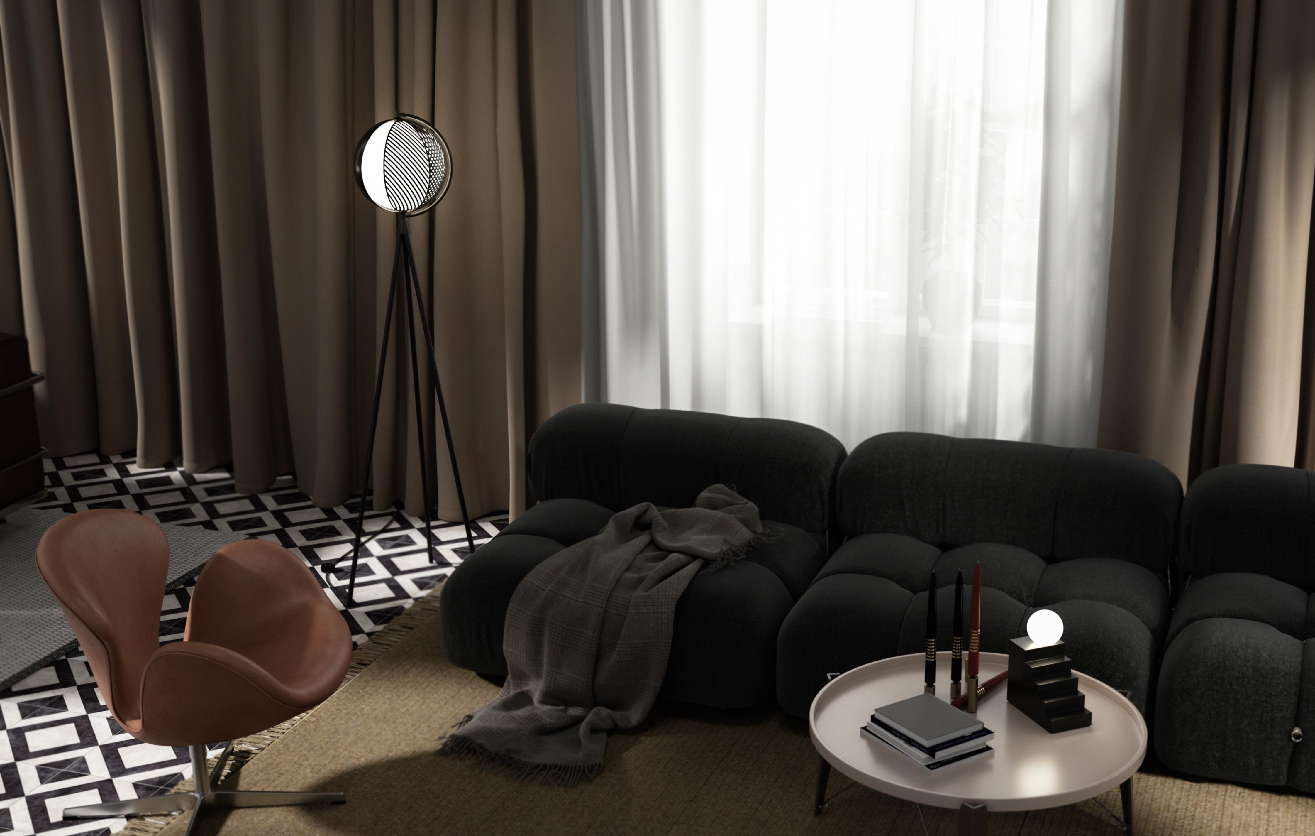 Trapeze is a true artist, an aerialist combining grace and style. Fixed in a single pose with endless possibilities. Each shade can be directed 360 degrees which allows the user to combine uplight and downlight at the same time. A playful and bold feature that also is pragmatic and practical in use.
