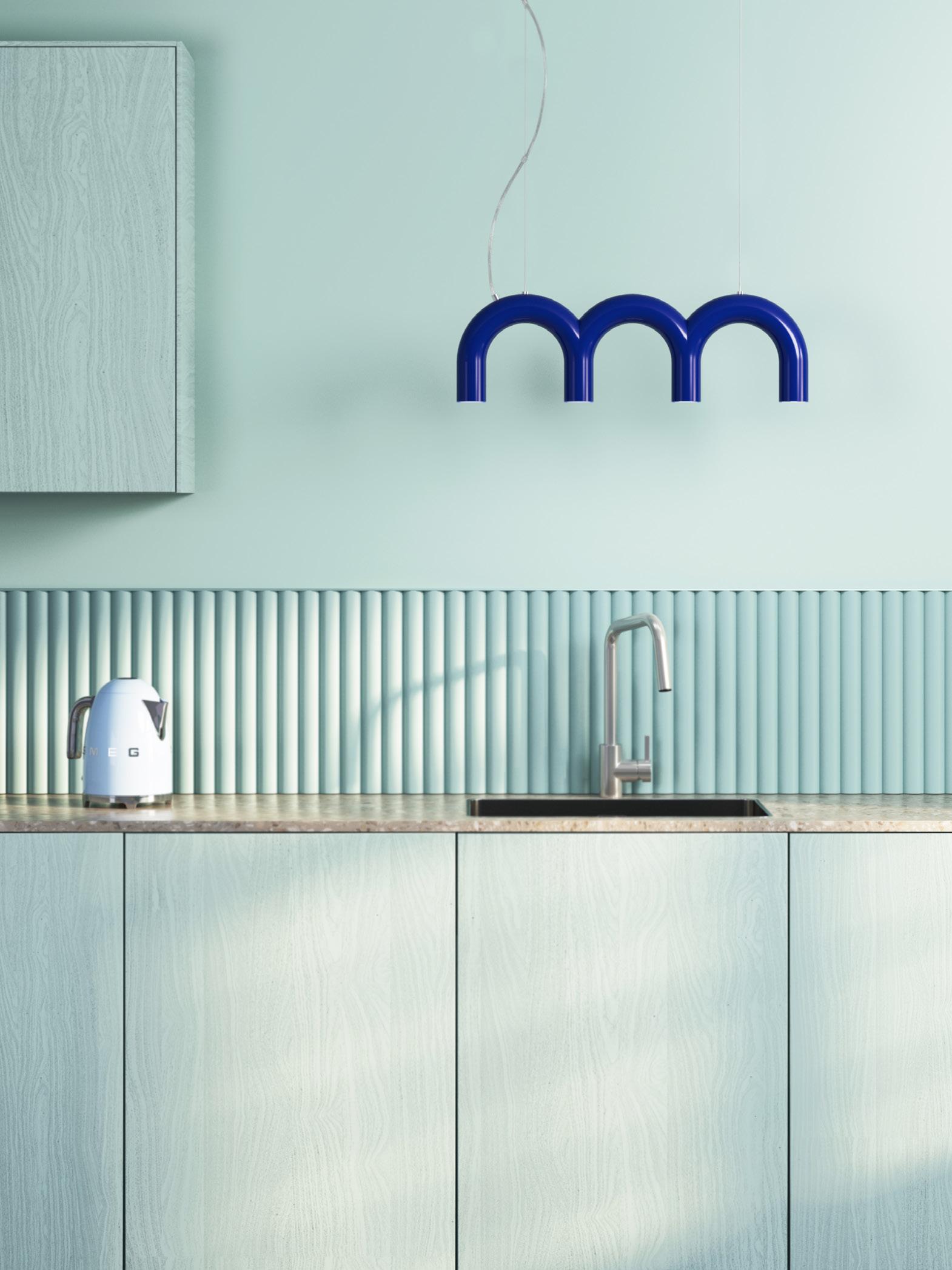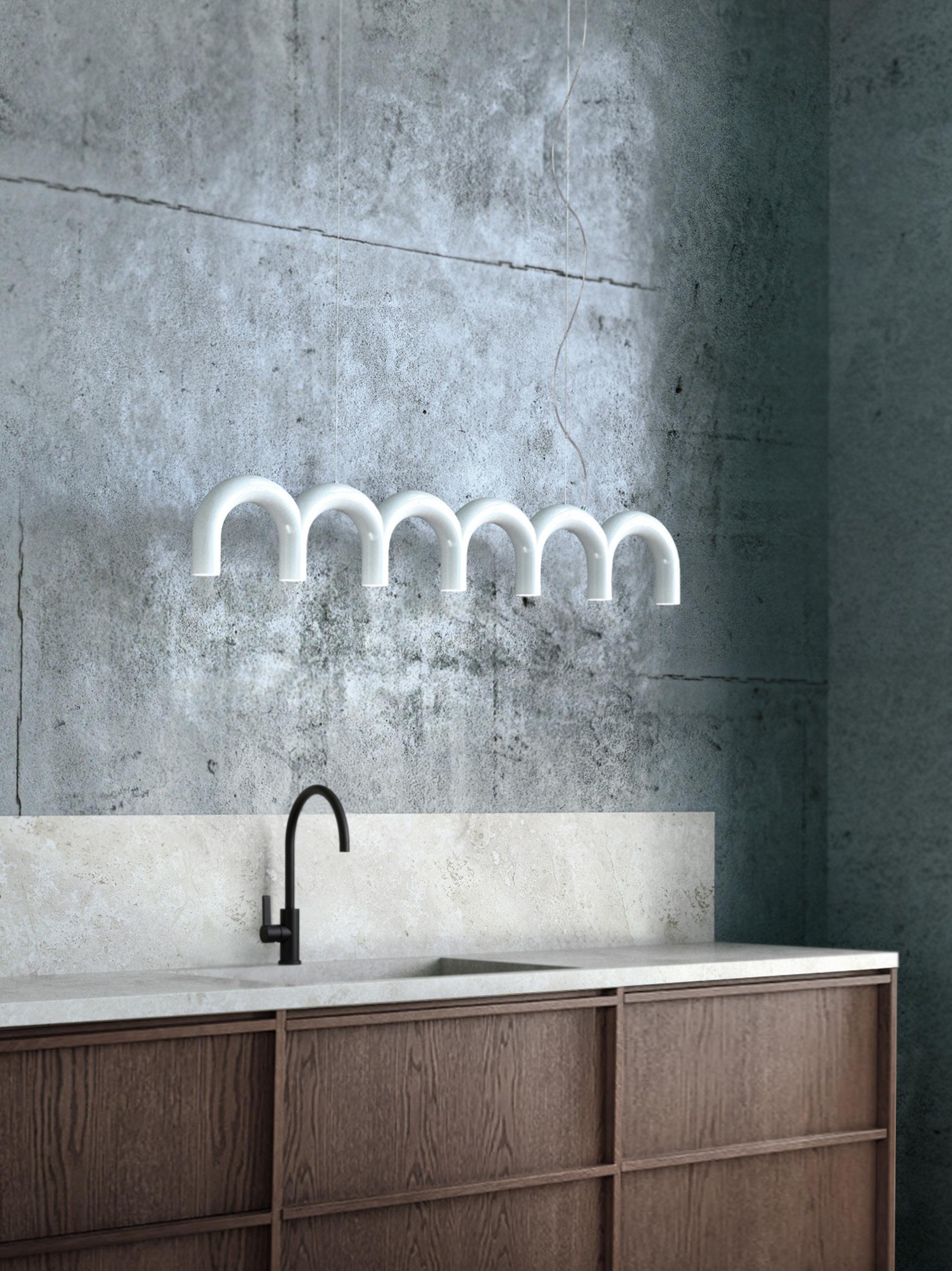 The wires that suspend the fixture are not just practical but also contribute to its visual allure. Whether it hangs over the dining table or in the office landscape, Superwaveisapendantthatimpresseswith strongvisualappearanceandfunctionality.