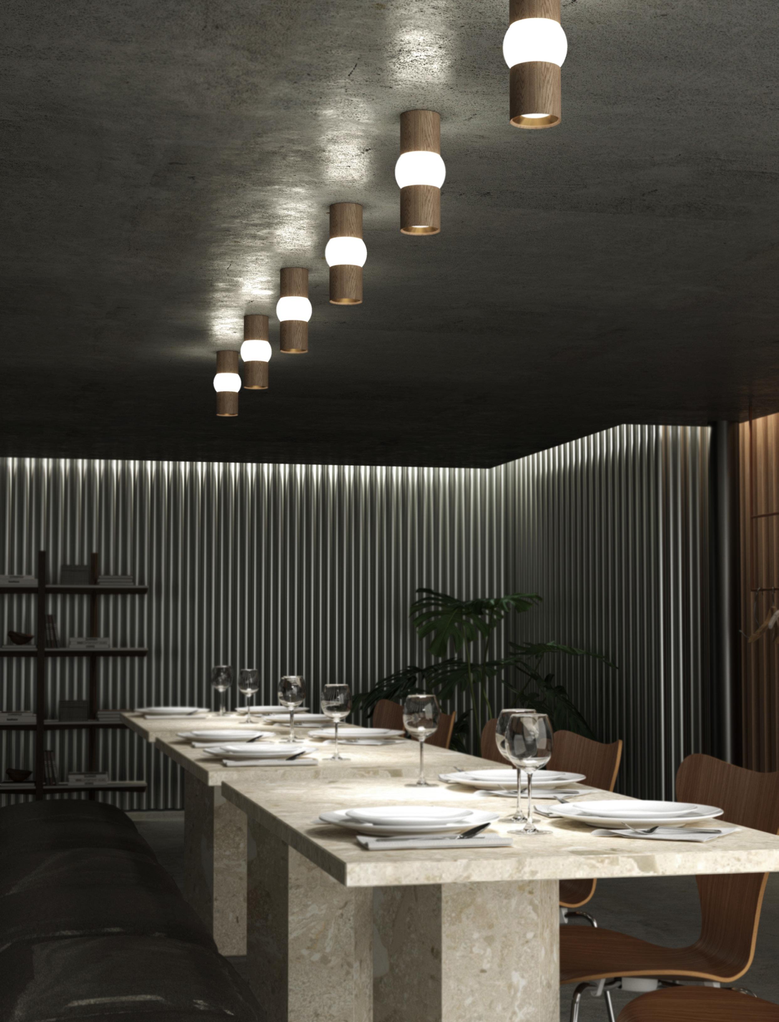 Expanding upon the Lightbone family, we are proud to introduce the Lightbone pendant/ceiling collection, available in sizes small, medium, and large. Each size encapsulates the essence of the original floor lamp, featuring the same meticulous design and solid oak wood construction.Additionally,thesependant/ ceiling lights are thoughtfully equipped with a spotlight for downlight, adding a versatile touch to their luminous charm.