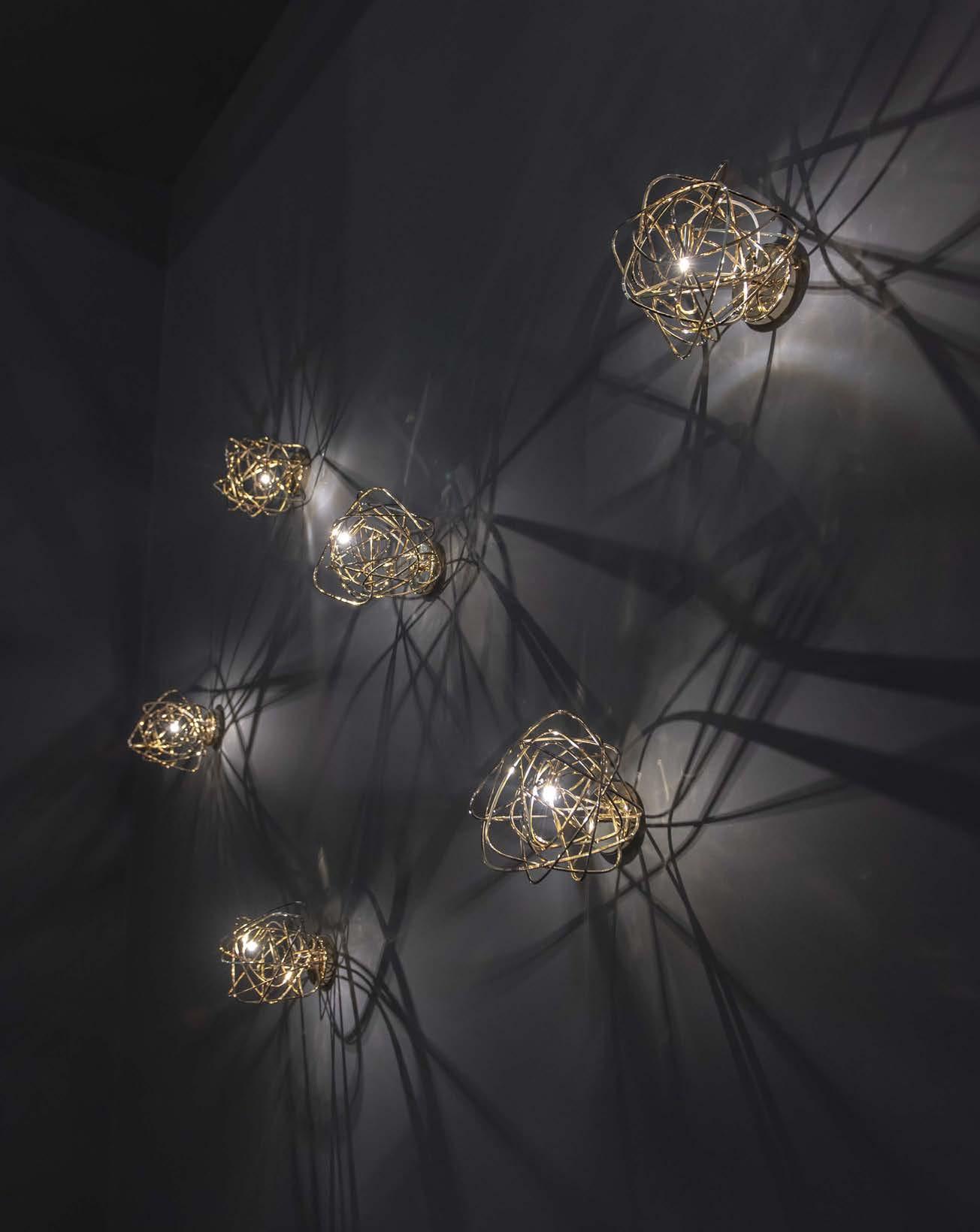 EEtoile’s intricate network of intersecting nickel lines recalls constellations in a clear night sky. Strategically placed bulbs cast a starry light, twinkling as viewers move around the pendant. By projecting these complex patterns throughout the room, Etoile casts a heavenly glow in any space. Design Christian Lava.