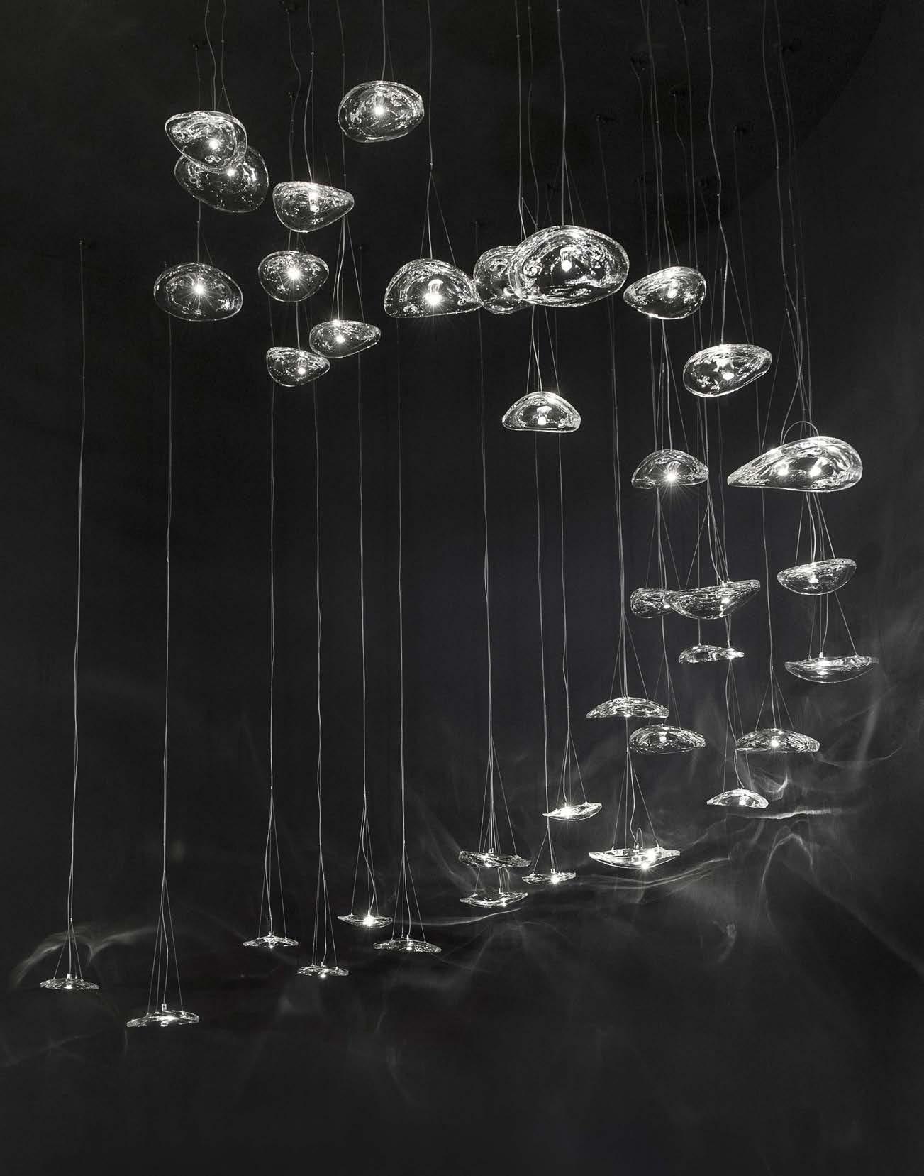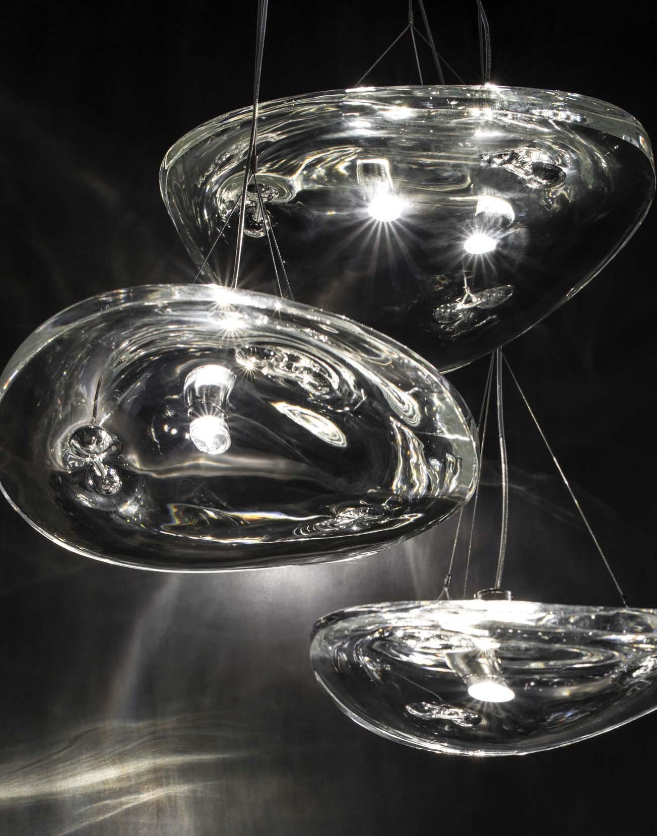 Terzani creations are always inspired by the dialogue between the company and the designers themselves. The pieces are born from a compelling feeling that Nicolas articulates to his designers. This inspiration can be a shape that exists in nature, as seen with the fish that inspired “I Lucci Argentati,” the stones or drops of water that inspired “Mizu,” or a material or working method that attracts his attention. With the team of designers who work with the company, a project will be executed with all the necessary technical diligence, but the starting point that defines any Terzani light is always a feeling.