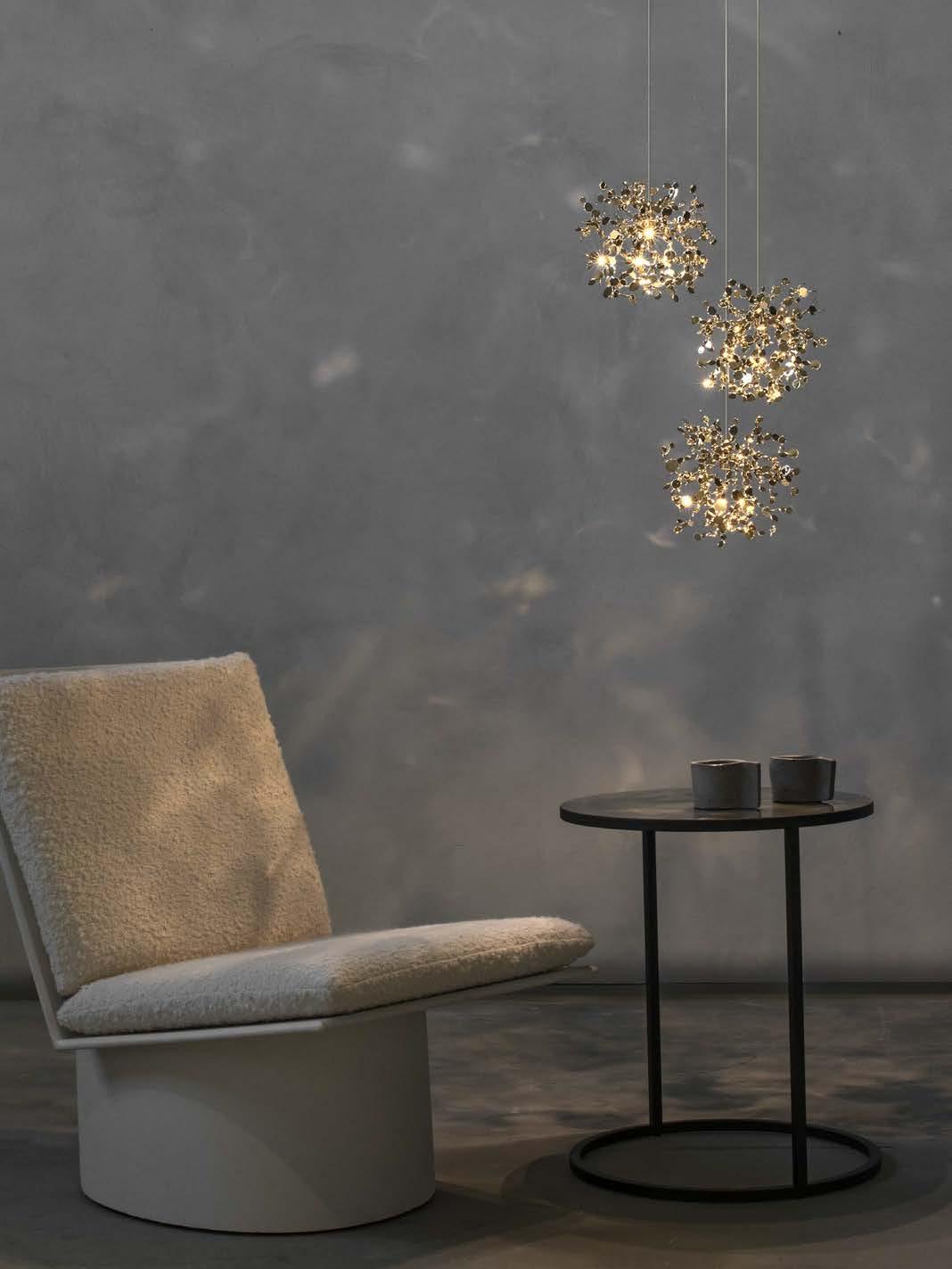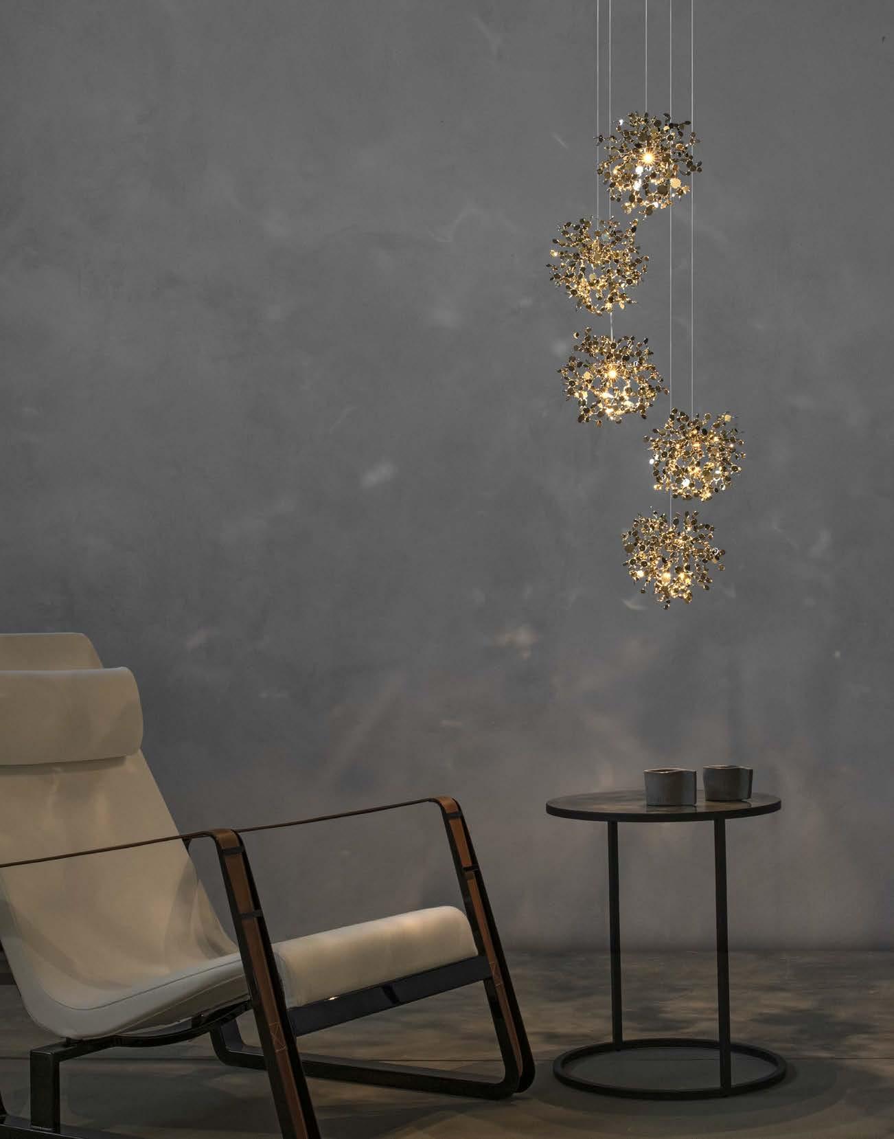 Terzani’s Precious Design Concept is luxury evolved. Each piece in this new lighting collection breaks the staid boundaries of traditional luxury and incorporates stunningly modern design, cutting-edge technology, artisan craftsmanship, and precious materials. The result is sculptures of light whose illumination transforms spaces through dynamic lighting and shadow effects. They create a new visual language of what luxury is, one that reflects both today’s aesthetics, architecture, and design traditions yet also pushes towards the future.