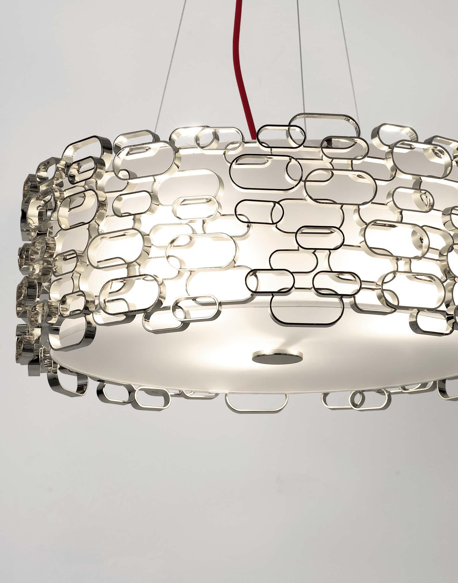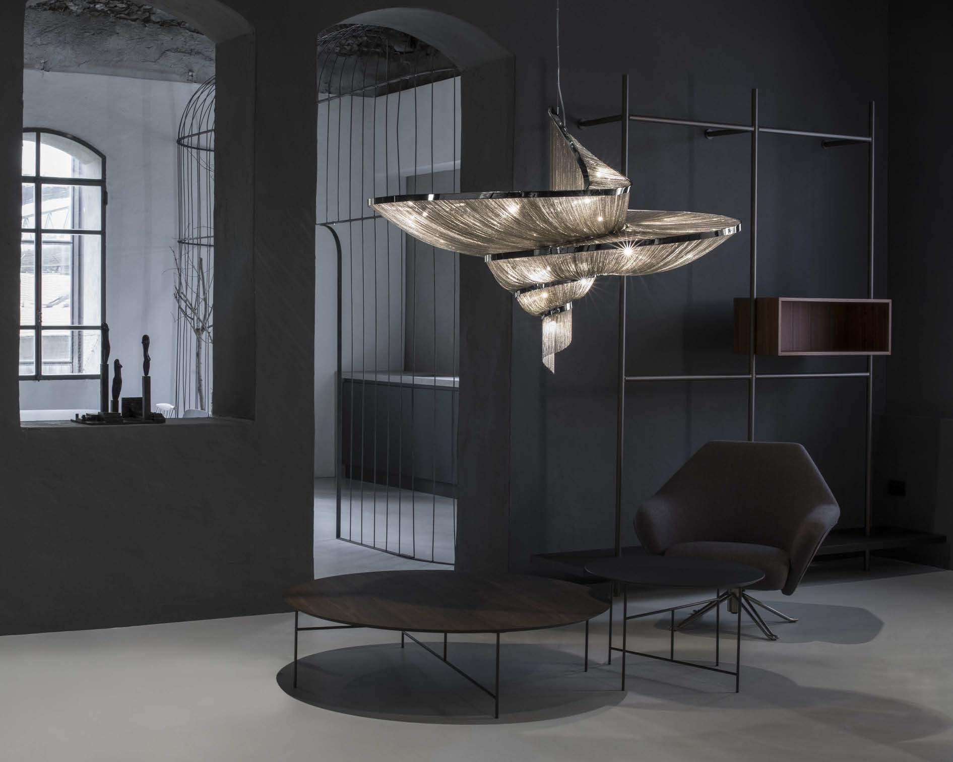 Terzani continues to reinvent the classics with Soscik, which combines traditional artisan techniques with cutting-edge technology to give the traditional chandelier a modern update. Created by interlacing metal chain over the frame, Soscik creates a dramatic and romantic effect while still complementing today’s modern luxury. Available as a chandelier or a ceiling lamp, Soscik proves that modern design does not have to sacrifice luxury. Design Nicolas Terzani.