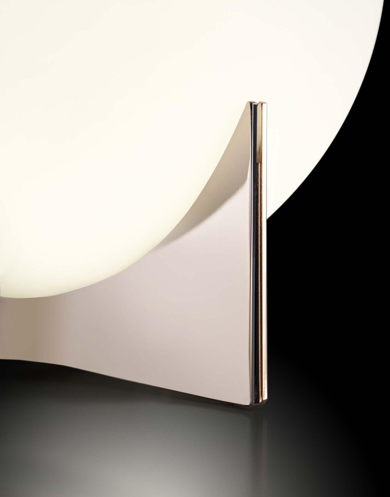 The great Brazilian architect Oscar Niemeyer once said about his work: “It’s not the right angle that attracts me, nor the straight line: stiff, inflexible, created by men. What really attracts me is the free, sensual curve. The curve I see on the sinuous course of our rivers, on the clouds in the sky, on your favorite woman’s body. The universe is entirely made of curves.” Inspired to pay tribute to one of the founders of modern architecture, designer Dodo Arslan has created a series of lights named “Oscar”, which pay homage through their adoption of Niemeyer’s signature sensuous curves. Oscar table lamp consists of a glass orb delicately held by curved brass. Available in nickel, brass, black, white, gold plated, and rose gold finish. Design Dodo Arslan.