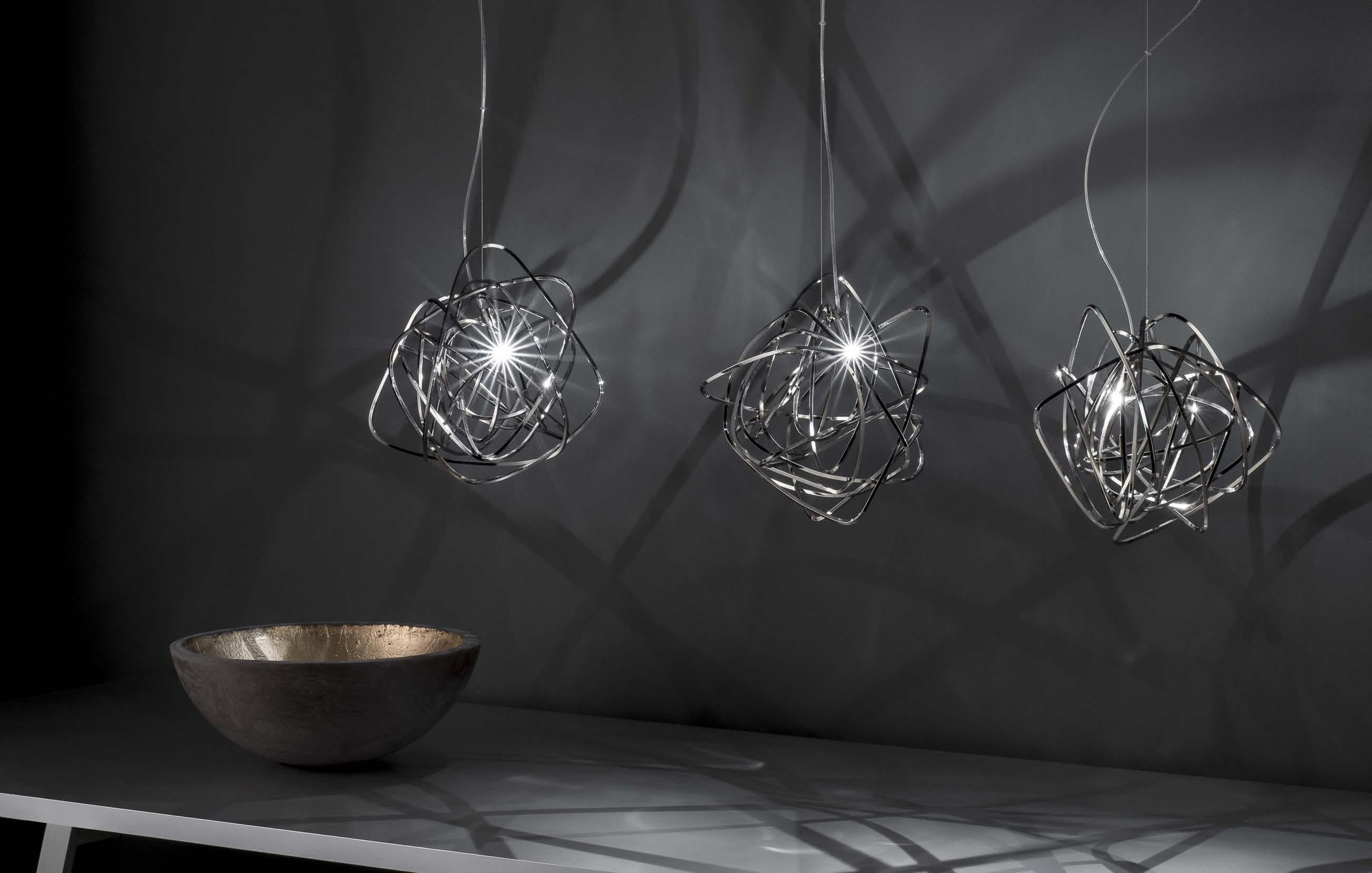 We no longer march in a straight line. Our lives are dynamic, intertwining collections of relationships, experiences, and journeys. Reflecting the fluidity of our generation, designer Simone Micheli has created a new, contemporary light for Terzani, Doodle. Like us, each Doodle is unique; each pendant is handcrafted by artisans to resemble a randomized path. And, to give us control over the journey we want to take, each led bulb can be placed anywhere on the light, not only reflecting the choices we make in life, but also giving Doodle special flexibility. Available in nickel, black nickel, gold, and copper plated finishes. Design Simone Micheli.