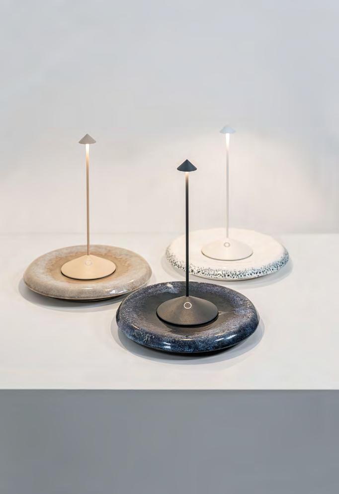 The Poldina Lido combines our modern cordless lamp with the timeless craftsmanship of Italian ceramics. The partnership with a long-established factory in Civita Castellana–a village near Rome, where the art of ceramics has been practiced since the 10th century BC–allows Zafferano to offer products which are made exclusively in Italy by hand.