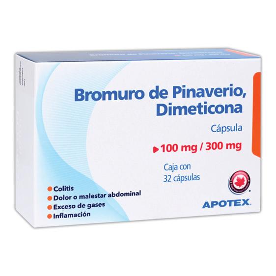 Cada cápsula contiene: Bromuro de Pinaverio 100mg+Dimeticona 300mg.