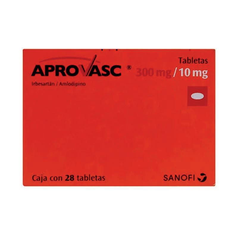 Cada tableta contiene: Irbesartán 300mg + Amlodipino 10mg.
