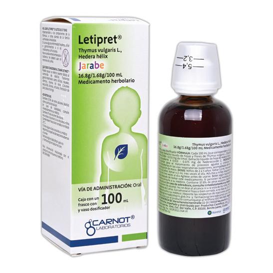 Cada 100mL contiene: Extracto líquido de hojas y ores de Thymus vulgaris L. (Tomillo) 16.8g+Extracto líquido de hoja de Hedera hélix (Hiedra) 1.68g.