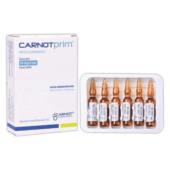Cada ampolleta contiene: Clorhidrato de Metoclopramida 10mg/2mL.