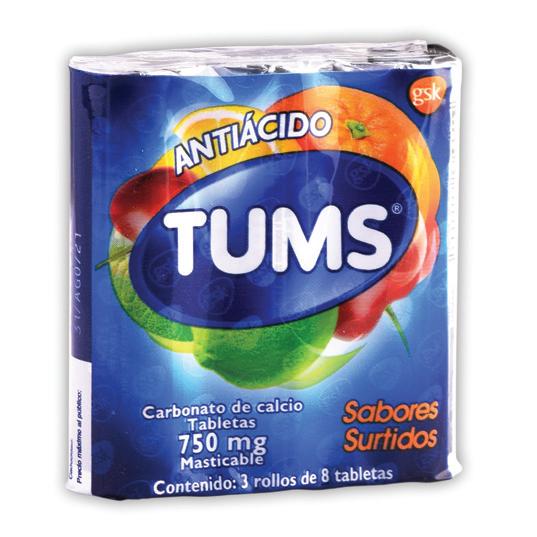 TUMS Sabs. Surts. Paq. c/3 ROLLOS c/8 TABS. Mast. 750 MG.