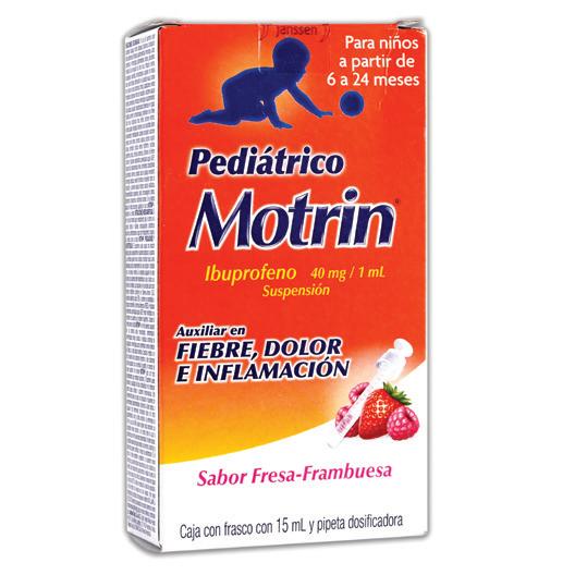 Alivia el dolor, disminuye la ebre. Indicado en el dolor de cabeza, de oidos o dental; dolor premenstrual; dolor de espalda, torceduras y contusiones. MOTRIN