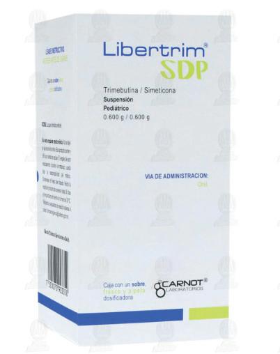 Fórmula: El sobre de 5g contiene: Trimebutina 0.60g. / El frasco con 26mL contiene: Simeticona 0.60g. (Cada 100 mL de suspensión reconstituida contienen 2g de Trimebutina y 2g de Simeticona).
