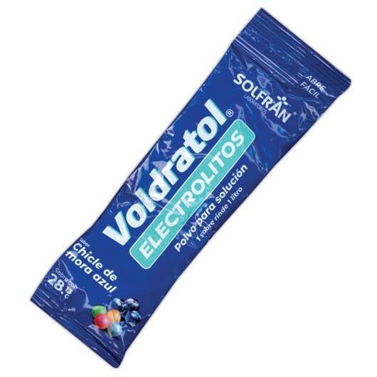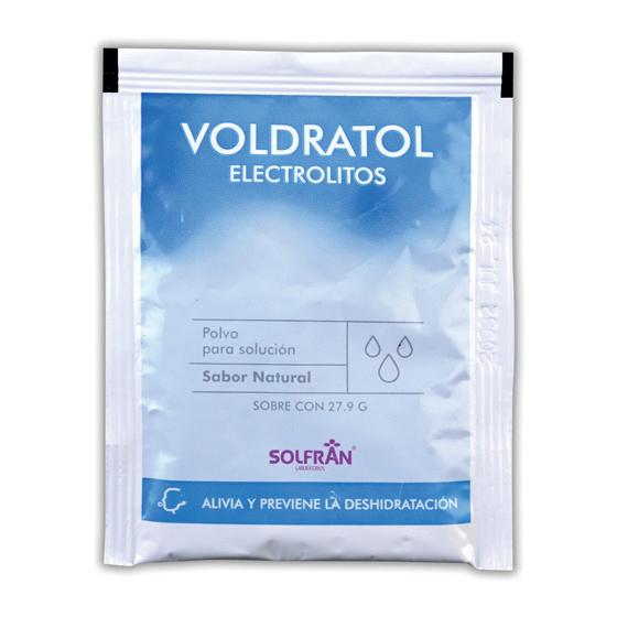 VOLDRATOL POLVO Sab. DURAZNO c/1 SOBRE 28.12 G. p/1 L. Indicación Terapéutica: Util para el manejo y tratamiento de la deshidratacion leve en niños, lactantes, pacientes operados y añosos con deshidratacion debida a diferentes causas patologicas, como colera, cirugia gastrointestinal y otras, pacientes quemados e insolados, diarreas, etc. (mmol, es la milesima parte de un mol, que es la unidad con que se mide la cantidad de sustancia que contiene un litro). Cada sobre con polvo para preparar un litro contiene: Glucosa 20g+Cloruro de potasio 1.5g+Cloruro de sodio 3.5g+Citrato trisódico dihidratado 2.9g. (mEq aproximados por litro: Sodio 90, Cloruros 80, Potasio 20, Citrato 30 y Glucosa 111).