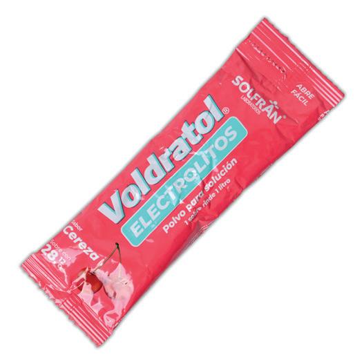 VOLDRATOL POLVO Sab. CEREZA c/1 SOBRE 28.12 G. p/1 L. Indicación Terapéutica: Util para el manejo y tratamiento de la deshidratacion leve en niños, lactantes, pacientes operados y añosos