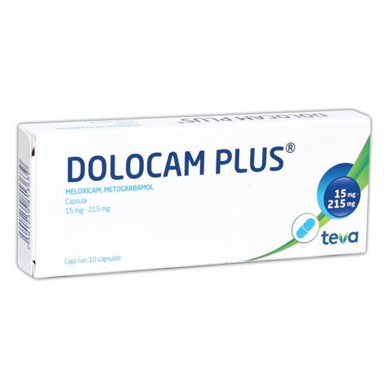 Fórmula: Cada cápsula contiene: Meloxicam 15mg+Metocarbamol 215mg.