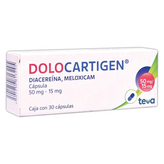 Cada cápsula contiene: Diacereína 50mg+Meloxicam 15mg.