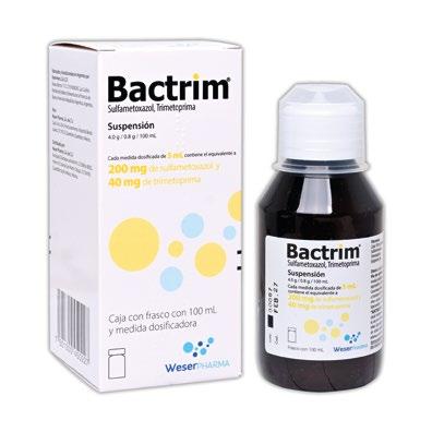 Fórmula: Cada 100 mL contienen: Trimetoprima 0.800g+Sulfametoxazol 4.000g. (Cada 5 mL de suspensión equivalen respectivamente a 40+200mg).