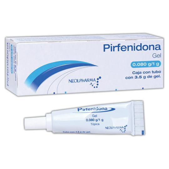 PIRFENIDONA (Neolpharma) GEL Tubo c/30 G. 8 G/100 G. Cada 100g de gel contienen: Pirfenidona 8.0g. (Cada g de gel equivale a 0.080g).