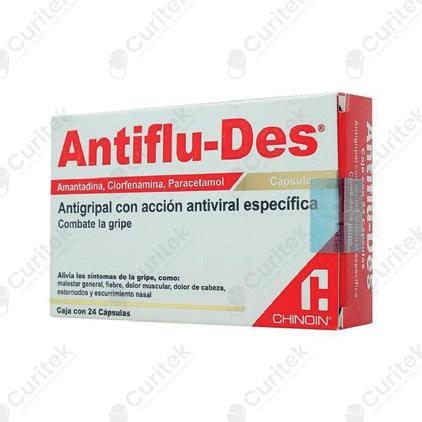 Cada cápsula contiene: Amantadina 50mg+Clorfenamina 3mg+Paracetamol 300mg.
