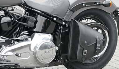 Leather swingarm bag, fits the left side. Made in Europe.