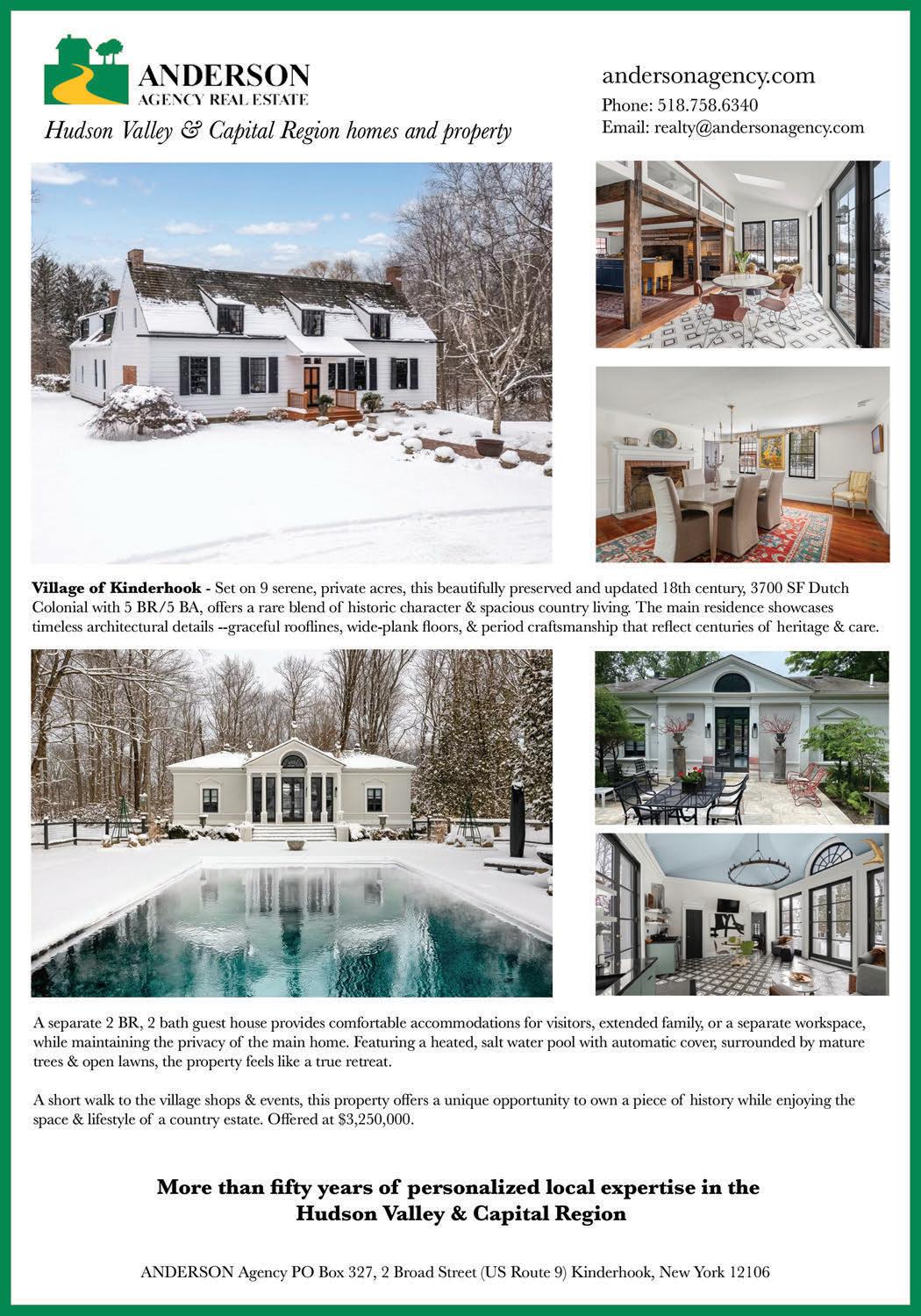 Austerlitz. A completely renovated 3-bed farmhouse, nestled on 6 acres minutes from Chatham Village and the Berkshires. Gorgeous pine floors, spacious screened porch. $619,000. Call Greg Kendall, 954-804-9085.