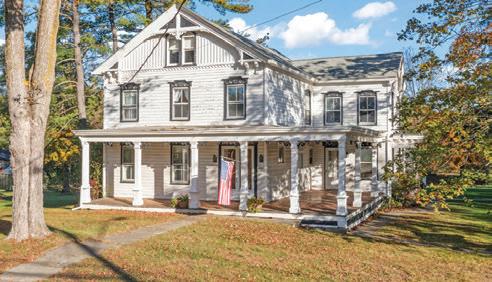 1836 Federal-Style Farmhouse This beautifully renovated farmhouse is rich with history. Set on over four acres with Willow Brook meandering through, this property offers a peaceful, storied setting with modern comfort throughout. Original wide board floors, exposed hardwood beams, and intricate molding and trim work highlight the home’s craftsmanship. The center hall layout leads to a stunning double parlor with two fireplaces and original pocket doors, as well as an open dining and living room boasting two additional fireplaces. The kitchen features a wood-burning fireplace, gas stove, island, walk-in pantry, and laundry room. Upstairs, you’ll find 3 bedrooms and 3 full bathrooms, as well as a room that could be used as a 4th bedroom. The exterior boasts classic clapboard siding, metal roof, original 6-over-6 windows, raised garden beds, a fenced backyard, and several vintage outbuildings.