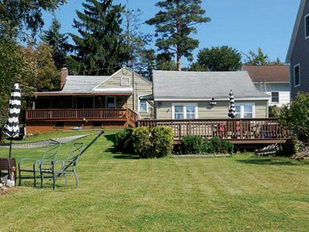 This contemporary saltbox has KINDERHOOK LAKE RIGHTS. Huge two tier party deck tucked in a woodsy setting with lovely gardens. Open floor plan with cathedral ceiling, double french doors on each level, 3 bed. 2 baths. $229.000