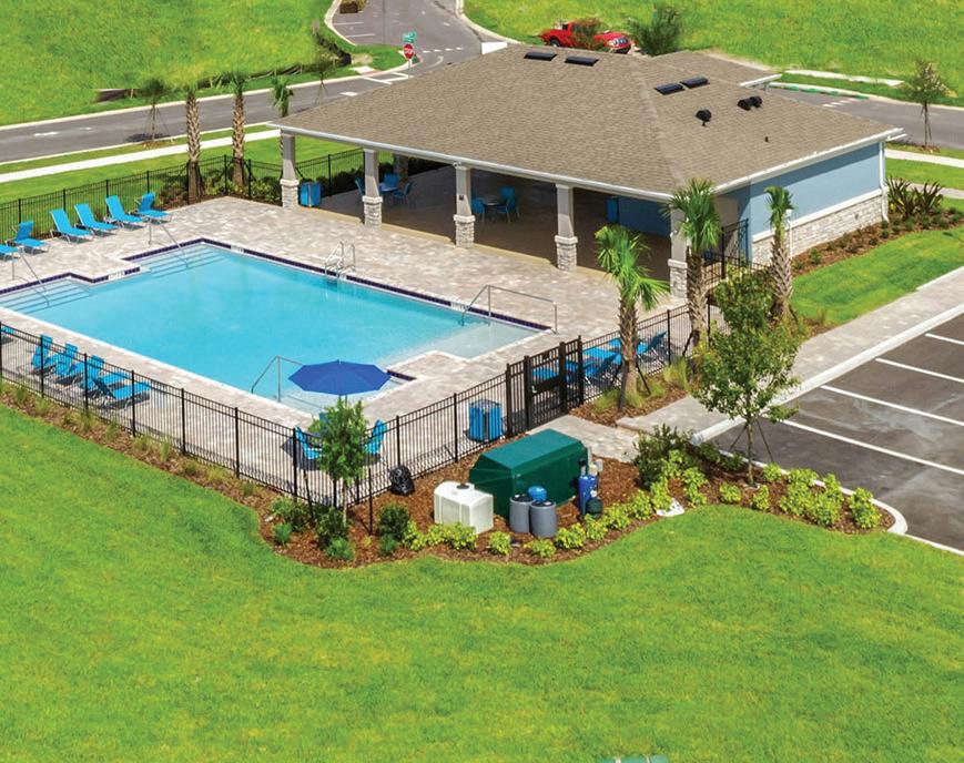 The townhome community of Mezzano (above) is in the Horizon West area of Winter Garden. It features 96 homes, which range in size from 1,840 to 2,024 square feet, with three or four bedrooms and 2.5 to 3.5 bathrooms. Paradiso Grande, (right) a new resort-home communi ty, features the Aquarius Clubhouse’s swimming pool and lazy river, game room, café and fitness center. Single-family homes boast the latest modern features, thoughtful finishes, upscale appliances and private pools.