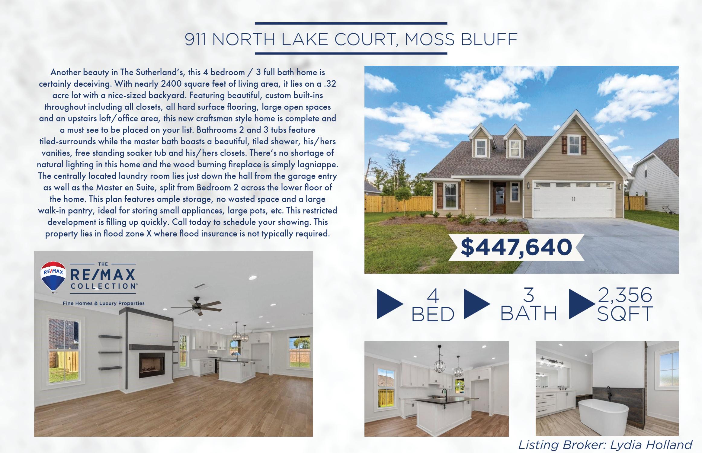 Call us today and let us make your next closing experience a unique one! Elissa Troutman Turner Attorney | elissa@mag-title.com Providing Southwest Louisiana with: • Residential & Commercial Real Estate Closing Services • Title Insurance & Title Curative Work • Real Estate Legal Services • Fast Turnaround Time • Locally Owned with a Dedicated, Full-Time Attorney M agnolia T itle of Louisiana, LLC 337-602-6700 2309 E Prien Lake Road, Lake Charles LA 70601 BESSETTE REALTY, INC. 3025 Lake Street | 337-474-2185 www.Century21-Bessette.com Licensed by the Louisiana Real Estate Commission Each Office is Independently Owned and Operated Sharel Hebert Realtor 337-515-8189 Treat yourself to an exquisite living experience with this three-bedroom home that has uncompromising quality built by Mike Dupin. Features include a flexible floor plan upstairs with an oversized bonus space, a magazine worthy kitchen with a 5-burner gas range, timeless farmhouse sink with an additional undermount prep sink in the island. This space is immersed in natural light coming in through the corner windows as well as the large windows in the living room. Antique one hundred-year-old + beams reclaimed from an old Ohio barn found new life as a focal point to the soaring ceilings. The spacious downstairs master suite includes a spa-inspired bath with a “wet area” where you will find custom tilework, a 71” cast iron soaking tub along with a separate shower and bench.