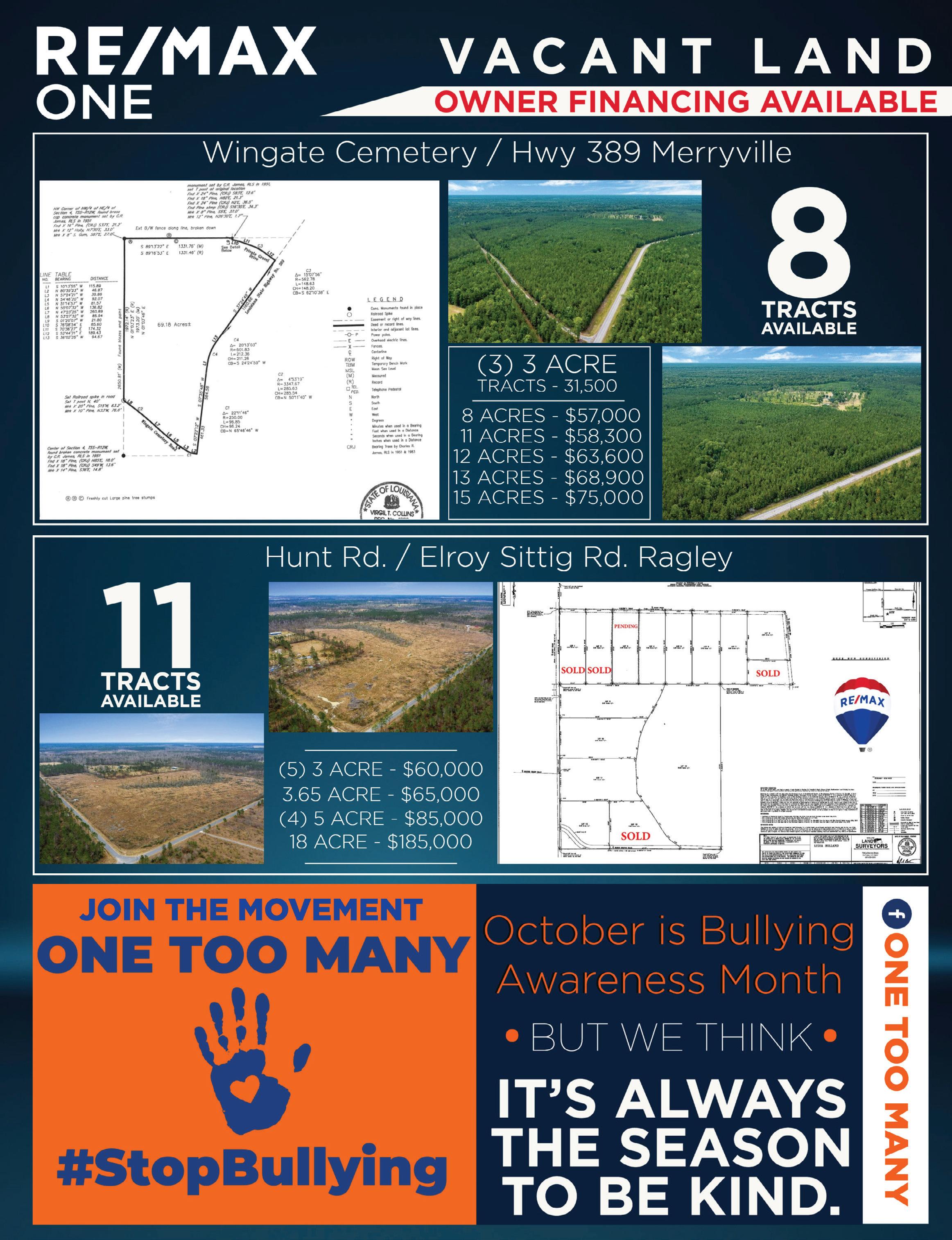 RobbieAssoc.Ingle Broker 337.304.0481 ringle@inglesafari.com View All of Our Listings Online at www.inglesafari.com 765 BAYOU PINES EAST | LAKE CHARLES, LA 70601 | 337-478-1601 | Each office is independently owned and operated. Alcock Road - Longville, LA LOTS 10-14 3 ACRES $58,000 PER LOT LOT 8-9 5.5 ACRES $74,500 PER LOT LOT 7 5.8 ACRES $78,500 LOT 6 5.98 ACRES $81,000 LOT 4 & 5 5.8 ACRES $81,000 PER LOT LOT 1-3 7.6 ACRES $90,000 PER LOT 3 - 40 Acre Lots Available • Flood Zone X • No Restrictions Roseville Subdivision - Moss Bluff, LA 28 LOTS LEFT. RANGING FROM $75,000 - $90,000 Looking for an acre lot in Moss Bluff to build your new home? ROSEVILLE ESTATES has just completed Phase 2 on a very nice restricted subdivision off of Paul White Rd in Moss Bluff. This is a premier subdivision with lots of new construction homes, underground utilities and street lighting. Lots are cleared and ready to build on. Community has a 5 acre stocked pond. Subdivision restrictions require 2200 living square foot minimum. Metal workshops are allowed. Water view lots are available. $300/year HOA fees. Not located in a flood Zone. Developer is in the process of changing subdivision requirements for the parish to allow all homeowners to cover the front ditches. SOLD Alcock Rd. McCorquodale 7OCTOBER 2022 HFGUIDE.COM