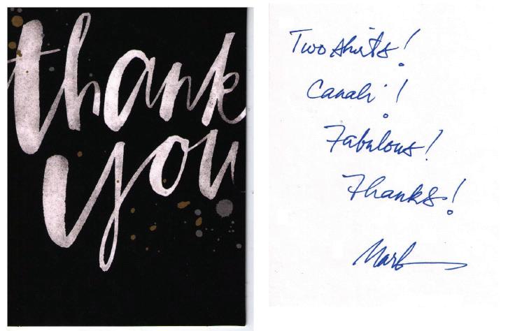 To demonstrate that I prac?ce what this ar?cle is preaching, pictured below is a thank-you note I wrote to my brother for a birthday giG he sent in March. My approach abbreviates what a thank-you note should include, but s?ll follows the guidelines to: