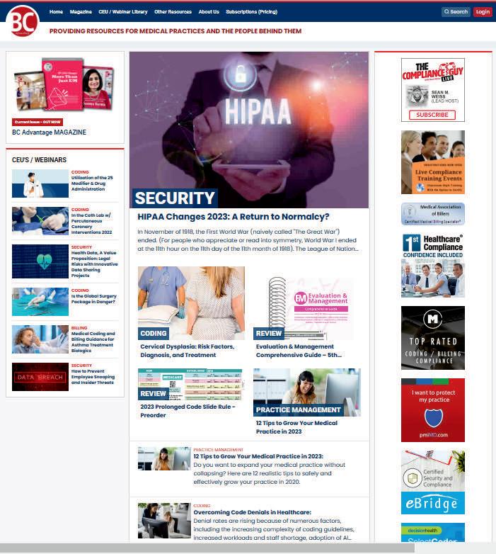 Change of address: Email - subscriptions@billing-coding.com or call 864 228 7310