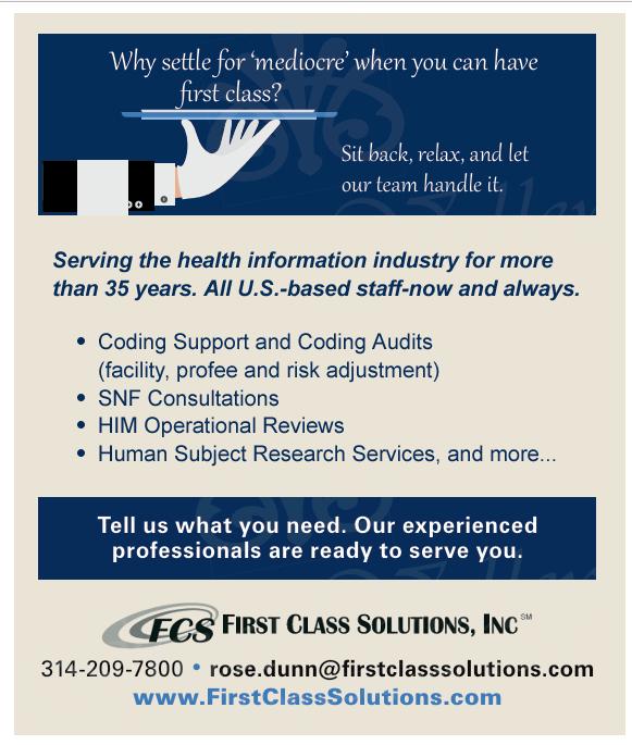 Rose T. Dunn, MBA, RHIA, CPA, FACHE, FHFMA, FAHIMA, is a past president and former interim CEO of AHIMA and recipient of AHIMA’s distinguished member and legacy awards. She is Chief Operating Officer of First Class Solutions, Inc., a healthcare consulting firm based in St. Louis, MO. First Class Solutions, Inc. assists healthcare organizations to enhance or transform their HIM operations, facility and physician office documentation, and revenue cycle performance, and provides coding support and coding audits. Rose is also the author of Libman’s HCC Fundamentals and Auditing programs. https://firstclasssolutions.com