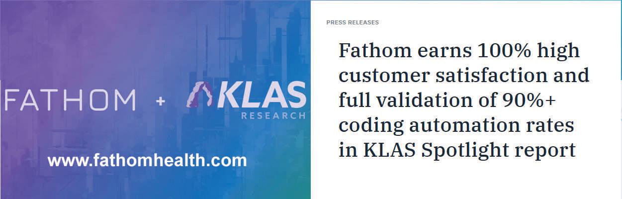 tangible ROI. This impact stems from 90%+ automation rates across medical specialties at the same or better accuracy relative to customers' previous coding solutions, as unanimously validated by customers in an earlier KLAS Emerging Company Spotlight report on Fathom (September 2024). Across Fathom's client base today, automation rates include 99% in radiology, 95% in primary care and urgent care, 92% in emergency medicine, and similar across other outpatient departments.