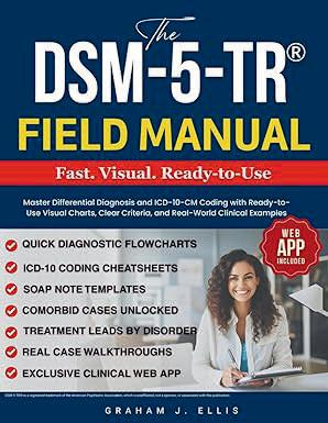 Tired of flipping through 1,500+ pages of DSM-5-TR text? This field-ready companion gives you rapid clarity and real-world usability. Designed for busy clinicians, it turns dense diagnostic language into visual charts, clear criteria, and ready-to-use examples that keep you moving.