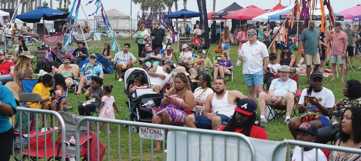 Elevate your festival experience with access to the exclusive future retro Space Bus, designed by the incomparable Misfits Krewe, Galveston’s awardwinning Mardi Gras krewe. VIPs get a unique and luxurious vantage point from which to enjoy the festivities from the space bus, and as well as AC restrooms, free drink tickets, and a VIP-only liquor bar.