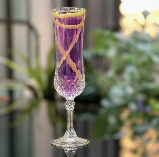 Infused peaflower gin Lemon juice Sugar Brute champagne TREMONT HOUSE