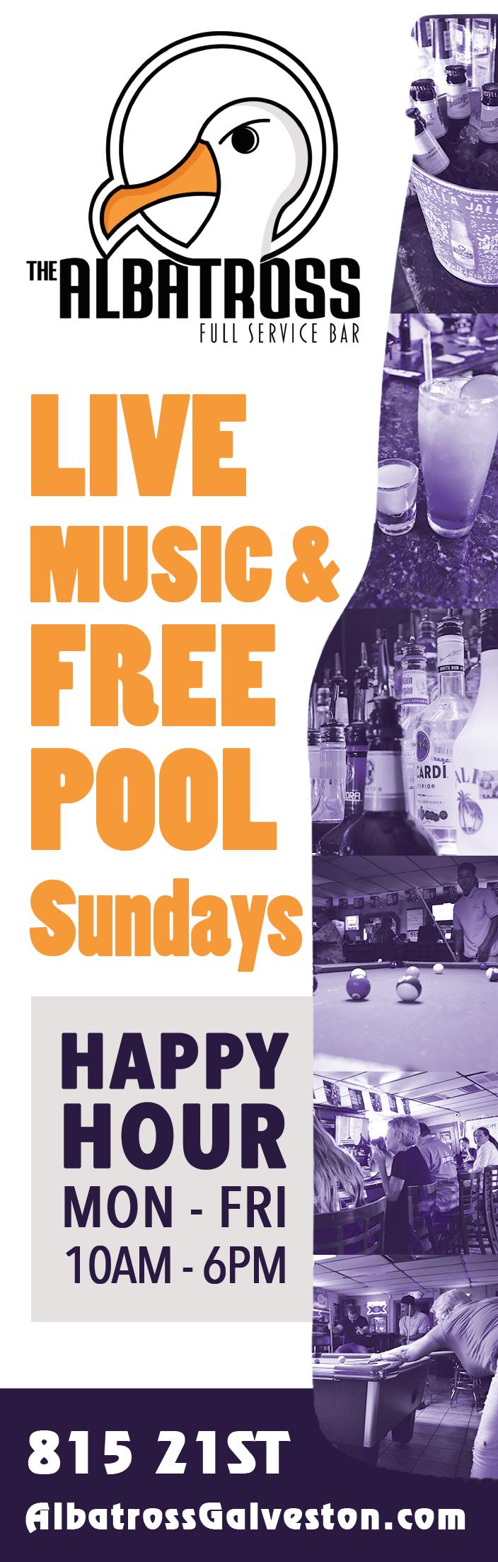 GALVESTONIANS WHO CALL THIS PLACE HOME, BY BIRTH OR CHOICE, VIEW THEIR ISLAND AS A REFUGE.To them, it’s not so much a plot of silty sand elevating from the bed of the Gulf of Mexico but a floating galleon of rebel life protected from life’s musket balls by the waters insulating it from the mainland establishment. We know that the pretty painted pillars of aquatic scenery flanking the causeway are chiefly there for tourists. If it were up to some of us, we would just as soon raise a flag of skull and crossbones at the entry to our rebel redoubt, scaring away the real estate carpetbaggers and spying constables hoping to bring order to this last holdout in Texas to traditional authority.