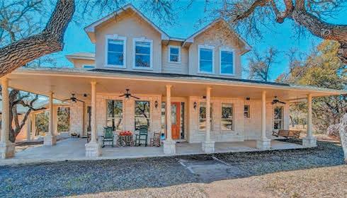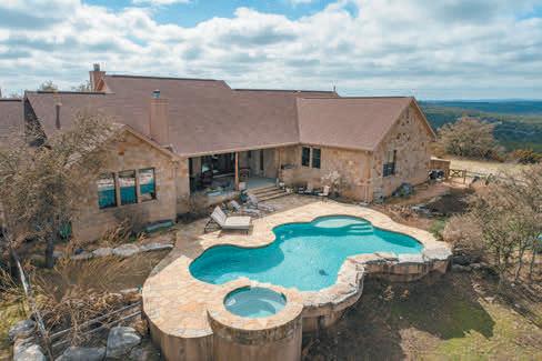 Hill Country private oasis on 4.9 acres, 3,463 sf home with office, 4 bed, 3 1/2 bath, 678 sf detached man cave with bathroom, oversized 3 car garage, stocked pond in front yard, cross fenced for horses or goats. Pool, covered porches and so much more!