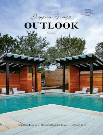 The Dripping Springs Outlook, a subsidiary of Valentino Publications, is mailed monthly to all street addresses serviced by the Dripping Springs Post Office in 78620. Entire contents copyright ©2023. Reproduction of any of this publication requires written permission of publisher. We are not responsible for the products and services advertised or the views contained in this publication.