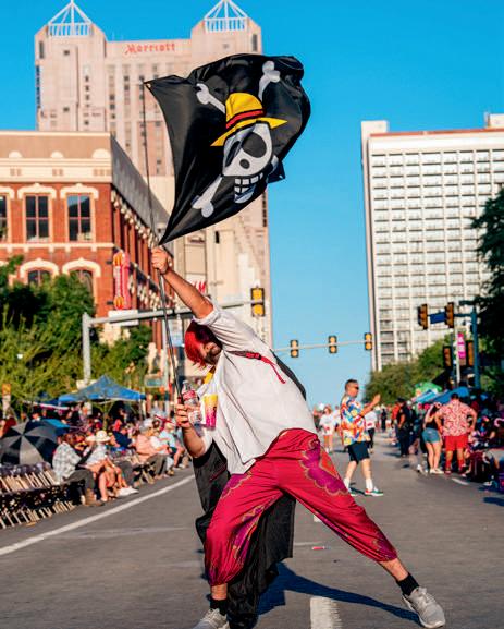 This year’s Fiesta San Antonio Commission theme is “Fiesta Together,” and you will certainly see that spirit reflected in the sea of volunteers who bring this parade to life by working side by side. We are incredibly proud of them, as well as of the many visitors representing marching bands, military service branches, and civic organizations featured in tonight’s parade. Please visit our newly revamped website, fiestasanantonio.org, to explore highlights of the Flambeau Parade and discover the wide variety of events taking place throughout these magical eleven days.