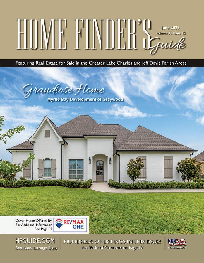 Text or Call: (337) 463-2121 Beautiful home w/huge back yard that is completely fenced in. 2 huge storage buildings in back & many beautiful rose bushes in the yard. 4BR/2.5BA. Plenty of space to spread out & relax. Beautiful foyer, formal dining room. The kitchen has beautiful cabinets & so much space. This home has alot to offer! 02-5762 Amy Smith (337) 401-0761 Text or Call: (337) 401-0761 Charming house! Home flows from room to room w/open floor plan! Cathedral ceiling in living room w/great dining area & additional family room! Impressive master w/great space & Cathedral ceiling as well a MBA w/his & her sink, walk-in shower, & relaxing garden tub. 02-5770 Audra Burge (337) 884-0712 Text or Call: (337) 884-0712 Text or Call: (337) 348-9756 Wow! Prime piece of property! 2-story farm house on 35+/- acres (17 ac planted mature pines). Upstairs apartment has a separate outside entrance. A man cave attached to the 3 car carport! Single BR cottage could easily serve as a cozy guest retreat. 880 sq. ft. shop w/an RV awning. 30 & 50 amp generator hook up. 4 camera security system & motion detectors to remain. Tucked away for total privacy! 02-5757 Charla Durham (337) 208-6991 REDUCED! REDUCED! Text or Call: (337) 208-6991 12 October 2023 hfguide.com