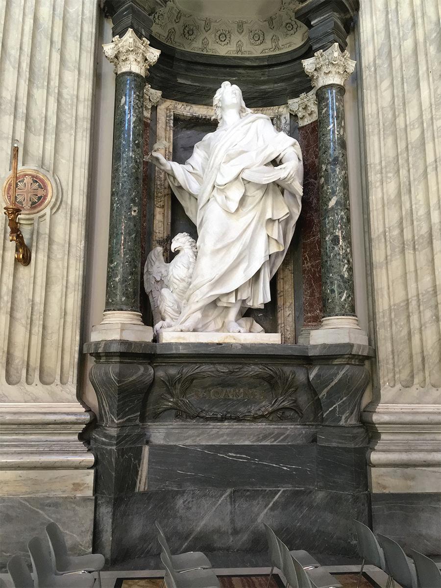 The inset photo I took at St. John Lateran Basilica in Rome, Pope Leo’s cathedral church, features the eagle by his right leg; also, note the head of John looking skyward or, “heavenward” to convey the word of God is reaching out to us in a guided and willed destiny. One of my favorite lines in this Gospel and looking up is: I am the Light of the world (8: 12). Known originally as the Basilica of Our