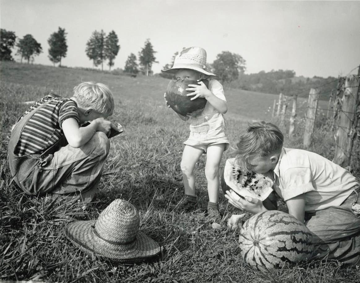 The fragrance from the massive melons activated my saliva glands like artesian wells. Luscious nectar dripped off my chin and arms. The flavor is etched in the memory of my taste buds. There’s never been a boy who helped his neighbor with more gusto than I. Mr. Renzo always complimented me on a job well done. One full moon evening a fellow conspirator and I decided it would be fun to raid Mr. Renzo’s watermelon patch--steal from the good man who would give me all the melons I wanted (that’s brilliant). Under the light of the big moon we each selected a large melon. We lugged them into the edge of the woods, cut them and began eating the warm, sweet flesh.