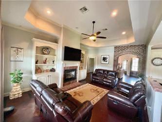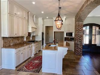 LIVING, 3 BR, 2 BA NEW FRENCH BRICK HOME just completed. Great room with fireplace and 10’ ceiling, custom kitchen with lots of cabinetry, 8’ island and granite countertops, open floor plan, crown moldings, wood and ceramic floors, master suite with 10’ trey ceiling, soaker tub and tile shower, large master closet with built-ins, study or 4th bedroom, excellent craftsmanship, large covered back patio with wood ceiling and ceramic tile flooring, additional added concrete, fenced back yard with wrought iron gate, gutters, landscaped, sodded yard.