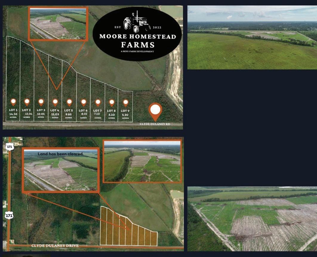 337.564.6345 I BAMSWLA.COM 2807 5TH AVENUE | LAKE CHARLES, LA 70601 $47,000 LOTS STARTING AT CHRIS KHOURY 337.526.9647 chris@bamswla.com | AUGUSTA VILLAGE Golf course living on the prestigious National Golf Club of Louisiana in Westlake, LA • Subdivision lots starting at $47,000 • Golf Course lots starting at $69,500 COME HOME TO MOORE HOMESTEAD FARMS Introducing a brand new restricted community of 9 mini-farms, ranging from 5 to 15 acres. Have livestock? Want a pond? CLEARED AND READY TO BUILD! This