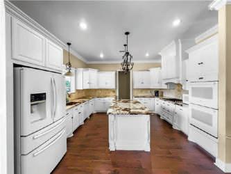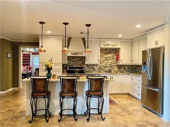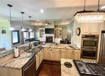 appliances, abundance of custom cabinets, copper sink, island w/granite countertops large walk-in pantry &