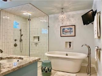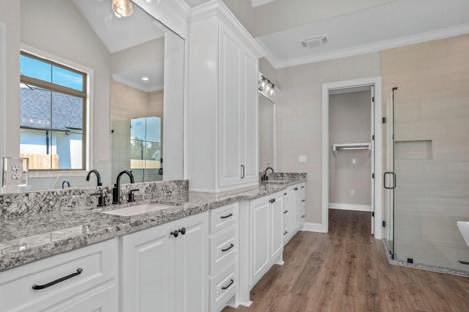 custom tile shower, huge soaking tub, walk-in closet & dual