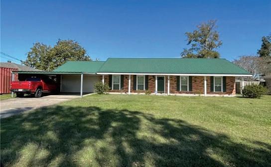 story ranch style home, centrally located in Lake Charles on corner lot with mature trees. This three bedroom, two and a half bath home with two living areas, attached two car covered carport with extra parking for RV or boat.